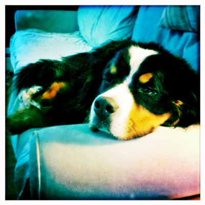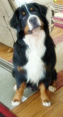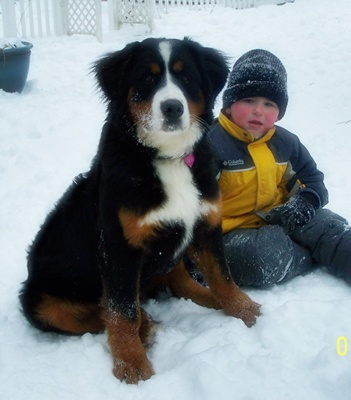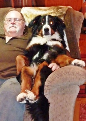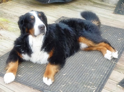 “Bentley is an amazing seven year old dog and a part of our family, which is why it is so hard to be in this position of having to find him a new home. Bentley is a very loyal dog who will thrive best in a home that can offer a level of consistency, no children and no dogs that have dominance issues. Bentley like most Bernese has some issues with anxiety, big changes in routines and noises, such as, strong winds and thunder often can make him anxious. All that being said there is a lot of good in Bentley. Bentley was born in Quebec on December 9th, 2004 and came to live in Vermont with us when he was ten weeks old. We have done our best since the beginning to provide Bentley a good home. Our first night together, Bentley feeling homesick, ended with us falling asleep on the couch together. He has loved the couch ever since. As much as he loves his naps he loves his walks. He walks well on a leash, though like most dogs he likes to stop and sniff along the way. Early on he became used to two walks a day often one walk would often be in a area where he could walk off leash. He does great off leash. Bentley is neutered but we did not make the decision to neuter him until he was three. He has had some history of conflict with other dogs, mostly he takes a defensive stance because of his loyalty and wanting to protect his family. I do not consider him an aggressive dog. Bentley just went in for a wellness exam on 1/16/12 and is up to date on his shots. For his age Bentley is in great health he has no current medical issues and does not take any medication besides glucosamine and msm for joint health. He does have some arthritis and dysplasia in his hips but maintains a normal active lifestyle.