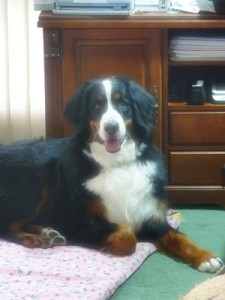 She was sold at a pet store when she was 5 months old. She was taken to a veterinary hospital by her new owner and was diagnosed with hip dysplasia. The owner (person who purchased her) returned her to the pet store. Because of her size and age, she was not able to fit in a cage at the pet store. So, their options were either to euthanize or ship her back to the breeder. The pet store was reluctant to give her to anyone and just wanted to euthanize her because shipping her back to the breeder was costly. But, an employee at the pet store knew an animal lover who just happened to be a vet tech, which would care for her. So, they agreed to release her to the vet tech. Intentions on giving her a life-long home has changed due to an unforeseen illness. Bernise is a great dog. Good with other animals. She has lived with cats, birds and dogs. Great on leash even though she is 90 lbs, you wouldn’t even know she was. House trained, doesn’t chew on anything except her bones. She is very sensitive, needs a soft toned voice. She has some manageable allergies. Hip dysplasia has not slowed her down. Her X-Rays were reviewed by the head orthopedic surgeon at MSU and it was advised to do no treatment other than supplements at this time. So we started her on Glucosamine to start building her up. She may or may not need intervention in the future.